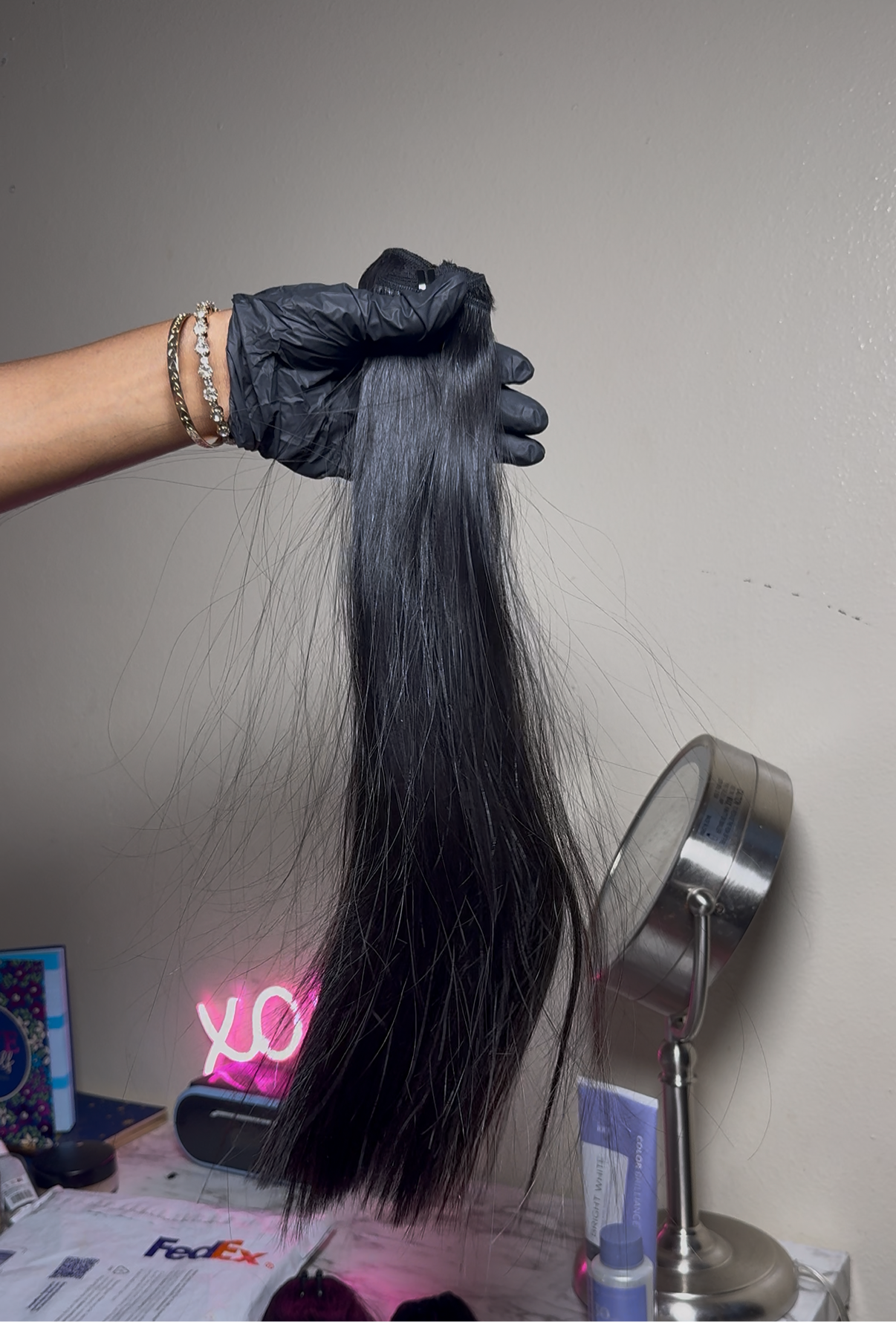 Our XRATED Sleek bundles feature 100% raw Vietnamese hair — thick from weft to tip with a naturally sleek, slightly wavy texture that holds its luxury finish wash after wash. Known for its strength, fullness, and silky shine, this hair can be worn in its natural state or styled bone straight with a flat iron.